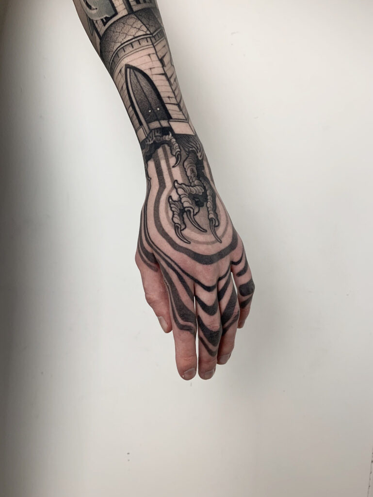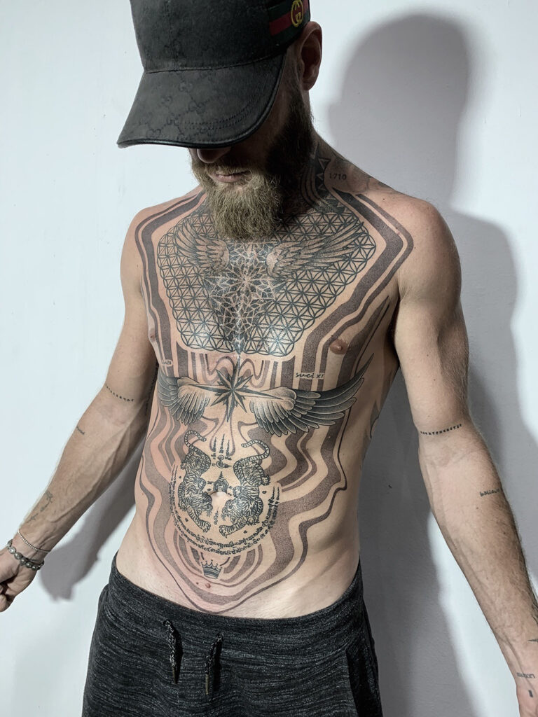 Inspirasi itu datang setelah ia melihat proyek tato Jepang yang hanya menampilkan satu elemen: udara. Bagi Vadim, konsep itu luar biasa menghapus objek utama dan menjadikan ruang kosong sebagai elemen penting. “Saya menyadari bahwa objek bisa saja berupa ketiadaan,” katanya. Ia mulai mengubah bentuk geometris sederhana seperti segitiga dan bola menjadi aliran tinta cair. Kini, banyak seniman tato meniru pendekatan ini, tetapi bagi Vadim, semua berawal dari keberanian untuk bereksperimen.